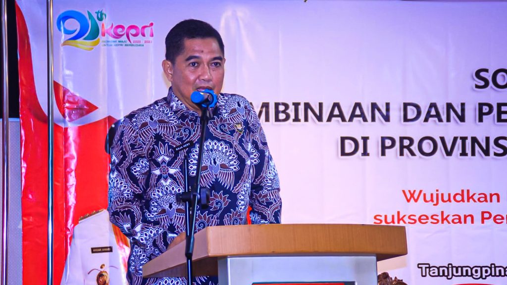 Sosialisasi Pembinaan dan Pemberdayaan Organisasi Kemasyarakatan / Lembaga Swadaya Masyarakat dengan tema “Berdemokrasi Dengan Santun Sukseskan Pemilu Serentak Tahun 2024” di Hotel Bintan Plaza Kota Tanjungpinang Jumat (24/11/2023).