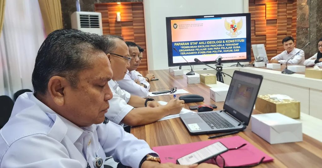 BAKESBANGPOL KEPRI – Kepala Badan Kesbangpol Kepri Bapak Raja Heri Mokhrizal,SH,MH menerima Kunjungan Staf Ahli Menko Polhukam Bidang Ideologi dan Konsultasi Bapak Irjen Pol Dr. H. Andry Wibowo, S.I.K., M. H., M.Si. dalam rangka Koordinasi terkait Pembumian Ideologi Pancasila Terhadap Organisasi Pelajar dan Para Pelajar Guna Terjaganya Stabilitas Politik, Hukum dan Keamanan, pada tanggal 29 Mei 2024 bertempat di Ruang Rapat Bakesbangpol Provinsi Kepri.