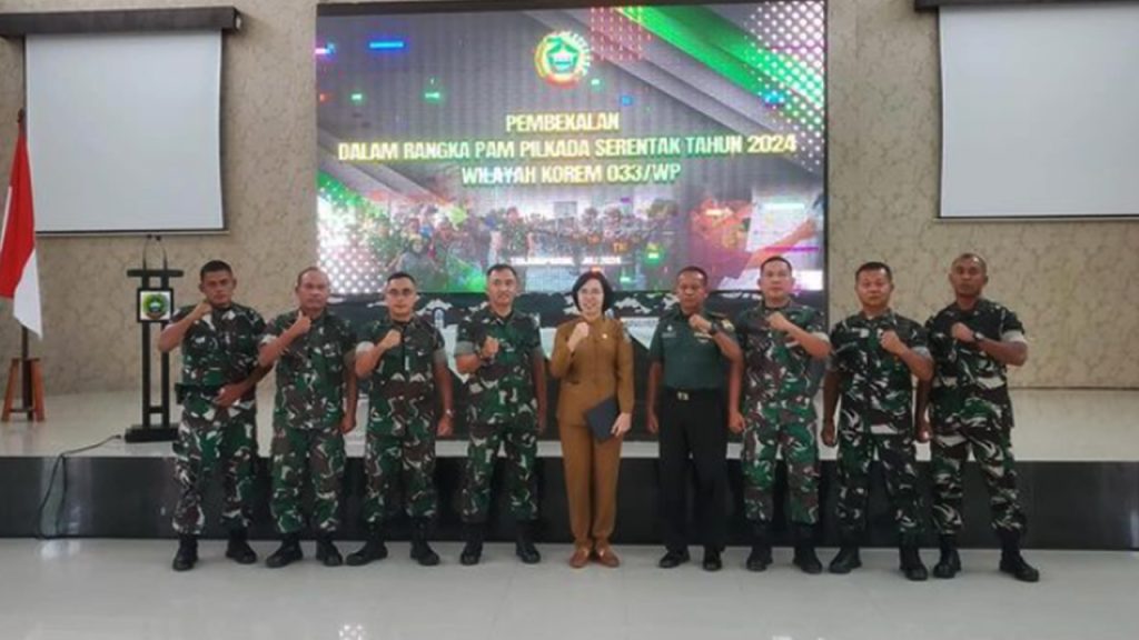 BAKESBANGPOL KEPRI – Kepala Badan Kesatuan Bangsa dan Politik Provinsi Kepulauan Riau diwaki oleh Kabis Politik Dalam Negeri Ibu Anna Rosa Manalu Menjadi Narasumher pada acara Pembekalan Pelaksanaan Pilkada di Provinsi Kepulauan Riau Tahun 2024 kepada Para Prajurit TNI Makorem 033 Wira Pratama yang berakaitan dengan Pelaksanaan Pengamanan Pemilihan Kepala Daerah (Pilkada) diwilayah Provinsi Kepri.