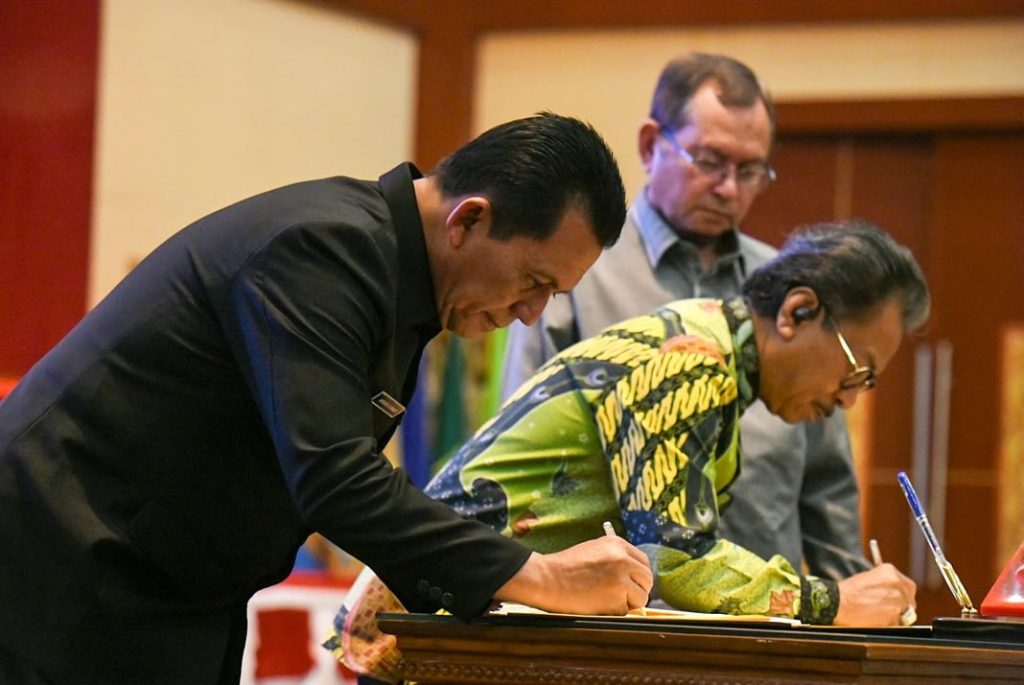 BAKESBANGPOL KEPRI – Kepala Badan Kesatuan Bangsa dan Politik Provinsi Kepulauan Riau yang diwakili oleh Kepala Bidang Ideologi, wawasan kebangsaan dan Karakter Bangsa Bapak Yunus Yanuardi menghadiri Rapat Paripurna Penandatanganan Nota Kesepakatan tentang Kebijakan Umum Perubahan APBD dan Prioritas Plafon Anggaran Sementara (KUPA-PPAS) Perubahan APBD Tahun Anggaran 2023 dalam Rapat Paripurna yang diselenggarakan di Balairung Wan Seri Beni, Dompak, Kamis 25 Juli 2024.