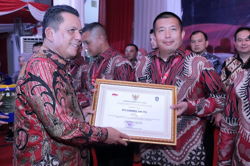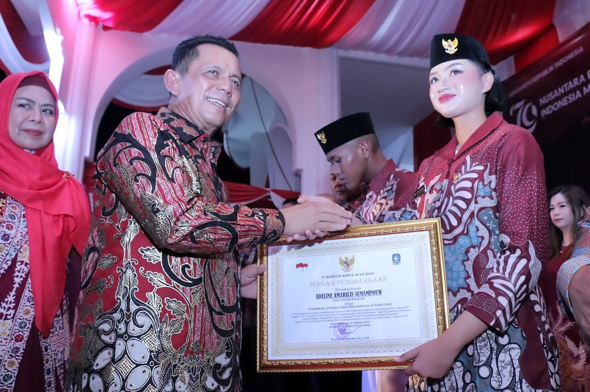 BAKESBANGPOL KEPRI – Gubernur Kepulauan Riau Bapak H. Ansar Ahmad, SE., MM Memberikan Penghargaan dan Apresiasi Kepada Paskibraka Tingkat Provinsi Kepulauan beserta Pelatih, Pamong dan Tim Medis Pemusatan Diklat Paskibraka Provinsi Kepulauan Riau atas keberhasilannya dalam menjalankan tugas sebagai Pengibar Bendera pada HUT ke-79 Kemerdekaan RI pada (17/08) kemarin./bakesbangpolkepri