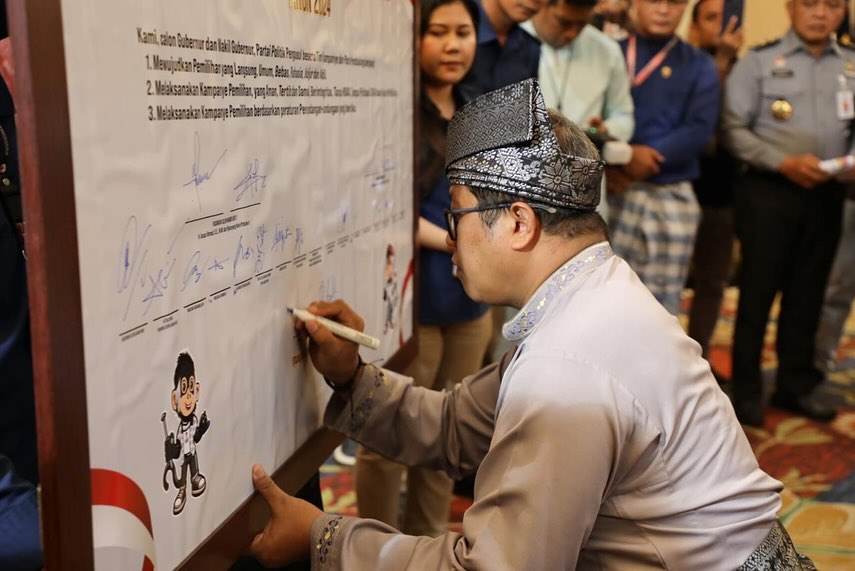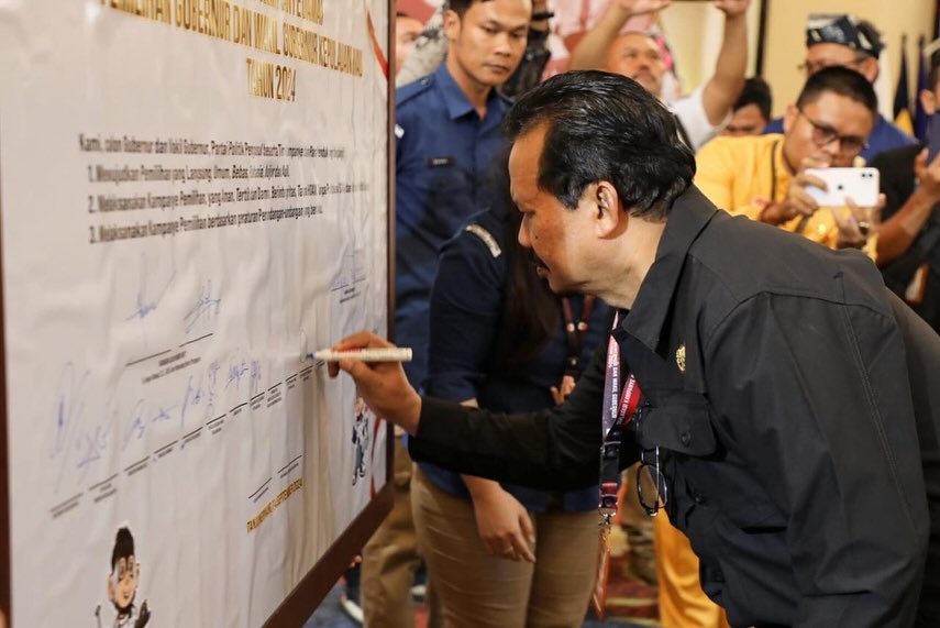 BAKESBANGPOL KEPRI – Kepala Badan Kesatuan Bangsa dan Politik Provinsi Kepulauan Riau, Dr.Darson, SPd,M.Si menghadiri Deklarasi Kampanye Damai Pemilihan Gubernur dan Wakil Gubernur Kepulauan Riau Tahun 2024 Yang diselenggarakan oleh KPU Provinsi Kepulauan Riau bertempat di Trans Convention Center, Hotel Aston Tanjungpinang.