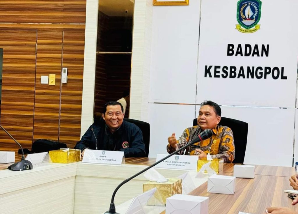 BAKESBANGPOL KEPRI – Kepala Badan Kesatuan Bangsa dan Politik Provinsi Kepulauan Riau, Dr.Darson, S.Pd, M.Si menerima kunjungan kerja Direktorat Pencegahan Badan Nasional Penanggulangan Terorisme Republik Indonesia dalam rangka Silaturahmi dan Overview terkait Forum Koordinasi Pencegahan Terorisme (FKPT) di Provinsi Kepulauan Riau pada Kamis (7/11) pagi di Ruang Rapat Badan Kesatuan Bangsa dan Politik Komplek Perkantoran Pemprov Kepri, Kota Tanjungpinang.
