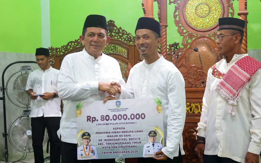 Dalam kesempatan ini, Gubernur Ansar menyerahkan bantuan hibah sebesar Rp 80 juta untuk masjid serta bantuan dari Baznas Kepri kepada 30 penerima yang terdiri dari guru TPQ, pengurus makam, fardu kifayah, dan pengurus masjid.