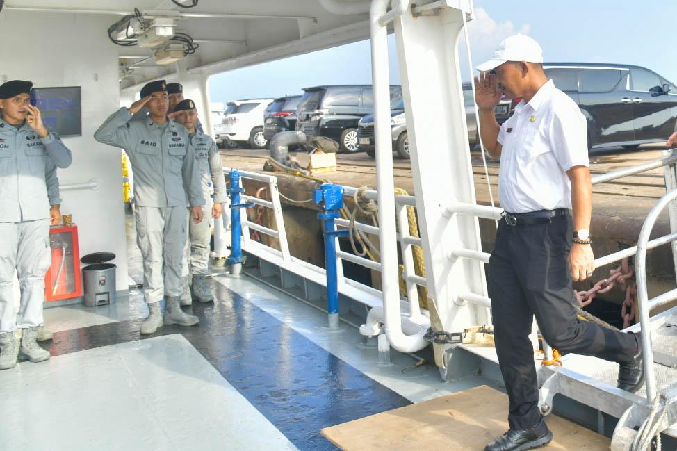 Rombongan yang menggunakan KN Tanjung Datu 301 milik Bakamla RI berangkat dari Pelabuhan Batu Ampar, Kota Batam, untuk meninjau pembangunan menara suar yang berada di salah satu jalur perairan terpadat di dunia, yaitu Selat Malaka. Proyek ini, yang terletak di gugusan Karang Pulau Bintan yang berbatasan langsung dengan Malaysia dan Singapura, diharapkan dapat meningkatkan keselamatan navigasi serta memperkuat kedaulatan Indonesia di kawasan tersebut.