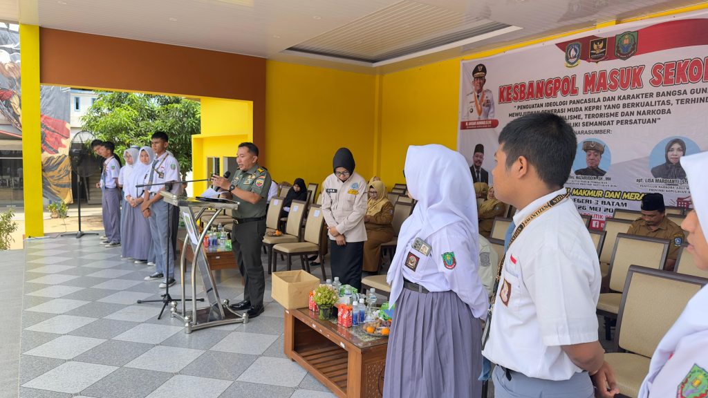 BAKESBANGPOL KEPRI – Badan Kesatuan Bangsa dan Politik (Bakesbangpol) Provinsi Kepulauan Riau (Kepri) Gandeng Korem 033/ Wira Pratama sebagai Narasumber pada Rangkaian kegiatan Kesbangpol Masuk Sekolah Seri-3 yang dilaksanakan pada hari Senin 26 Mei 2025 di SMA Negeri 3 Batam.