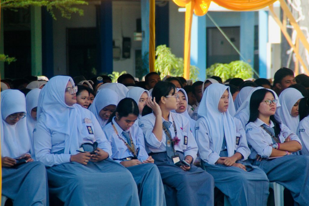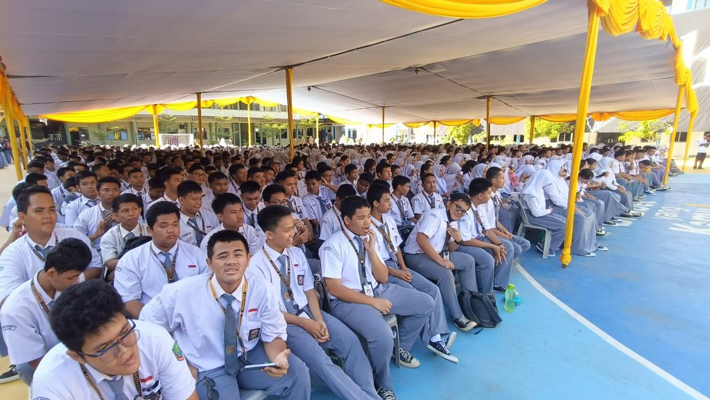 BAKESBANGPOL KEPRI – Sebanyak 1.200 Siswa siswi kelas X dan XI SMAN 3 Batam mengikuti Sosialisasikan Pencegahan, Pemberantasan, Penyalahgunaan dan Peredaran Gelap Narkotika (P4GN) yang merupakan bagian dari Program Kesbangpol Masuk Sekolah (KEMAS) Seri-3 pada hari Senin tanggal 26 Mei 2025 Pukul 09.00 WIB bertempat di lapangan Upacara SMA Negeri 3 Batam.