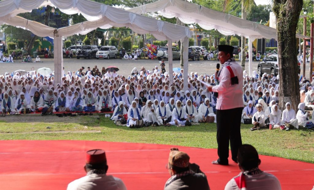 “Kalau kita tidak bisa bantu dengan harta, bantu dengan doa. Tapi jika kita mampu, berikan yang terbaik. Jangan diam. Karena diam berarti andil dalam kezaliman,” tegas Gubernur.