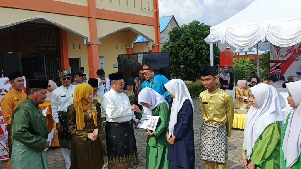 Staf Ahli Pemprovkepri Kepri menyerahkan hadiah kepada pelajar yang beruntung