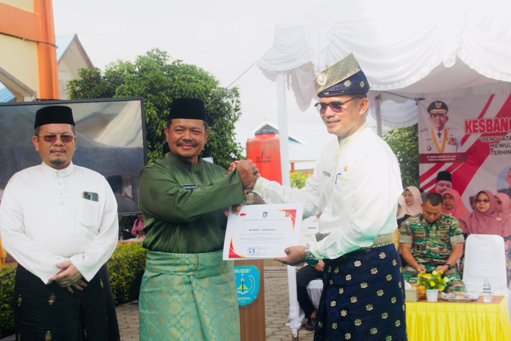 Kaban Kesbangpol Kepri menyerahkan piagam secara simbolis kepada Kepala SMAN 7 Tanjungpinang