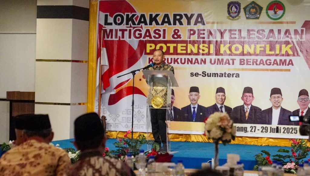 BAKESBANGPOL KEPRI – Kepala Badan Kesatuan Bangsa dan Politik Provinsi Kepulauan Riau Bapak Drs. Muhamad Iksan, M.Si menghadiri kegiatan pembukaan Lokakarya FKUB Regional Sumatera yang diselenggarakan oleh Forum Kerukunan Umat Beragama (FKUB) Provinsi Kepulauan Riau pada hari Minggu 27 Juli 2025 di Hotel CK Tanjungpinang. Acara dibuka secara resmi oleh Sekretaris Daerah Provinsi Kepulauan Riau, Adi Prihantara,SE.MM.