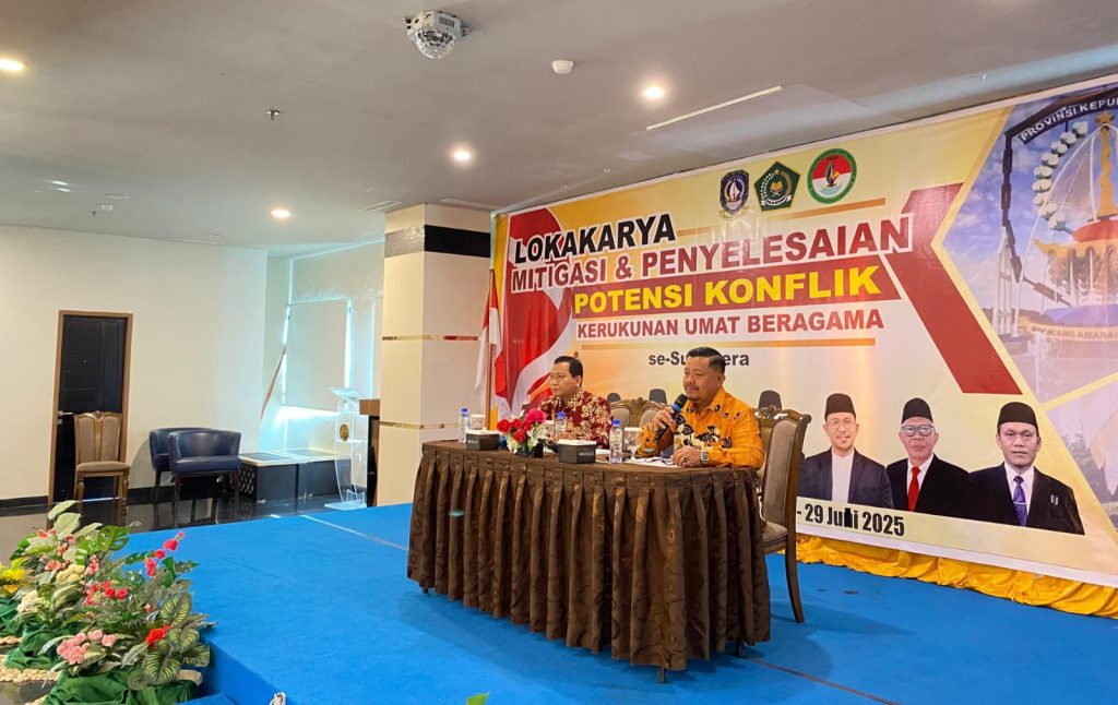 BAKESBANGPOL KEPRI – Kepala Badan Kesbangpol Provinsi Kepulauan Riau (Bakesbangpol Kepri), Drs. Muhamad Iksan, M.Si menjadi Narasumber pada lanjutan Rangkaian Kegiatan Lokakarya FKUB Regional Sumatera Tahun pada hari Senin 28 Juli 2025 Pukul 09.00 WIB di Hotel CK Tanjungpinang.
