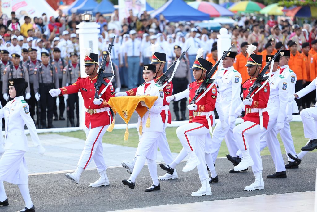 Pasukan upacara terdiri dari 6 kompi, yaitu kompi TNI, Polri, Basarnas, Rutan/Lapas, KSOP, Imigrasi, Satpol PP, Korpri, mahasiswa, dan siswa.