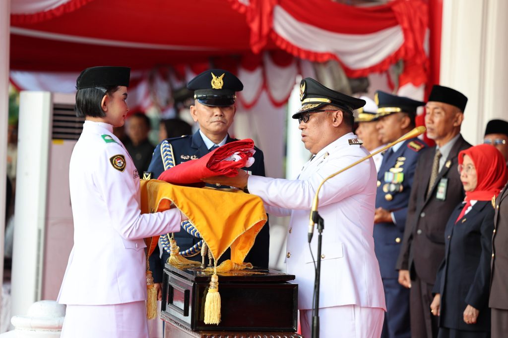 BAKESBANGPOL KEPRI – Wakil Gubernur Kepulauan Riau, Nyanyang Haris Pratamura, SE, M.Si menjadi Inspektur Upacara pada Upacara Penurunan Bendera Merah Putih dalam rangka Peringatan Hari Ulang Tahun Ke-80 Kemerdekaan Republik Indonesia Tingkat Provinsi Kepulauan Riau Tahun 2025 di Gedung Daerah Provinsi Kepulauan RIau pada Minggu, 17 Agustus 2025, Pukul 17.00 WIB.