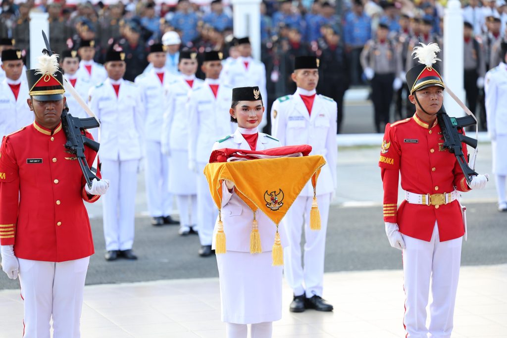 Paskibraka yang bertugas sebagai Pembawa Bendera: Nur Setya – Siswi SMAN 1 Karimun, Penggerek: Muhammad Aqila Alfikri, SMAN 1 Tanjungpinang, Pengulur: Rendika Alkhadafi, siswa SMAN 1 Bunguran Timur Natuna, Pembentang: Muhamamd Al Aqsha Walidain, Siswa SMAN 4 Batam. Adapun Komandan Upacara Mayor Lek Rusmadi, SH (Kadisops Lanud RHF Tanjungpinang, Perwira Upacara, Kapten Wahyu Tri Widayanto (Ps Kasi BMP Dislog Lanud RHF Tanjungpinang).