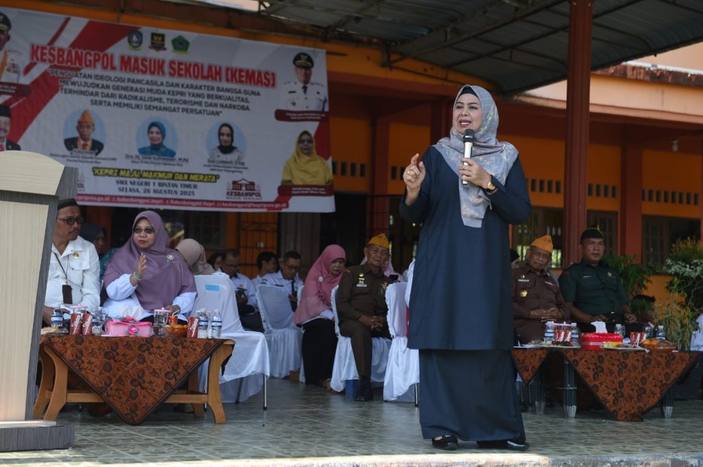 BAKESBANGPOL KEPRI – Ketua Tim Penggerak Pemberdayaan Kesejahteraan Keluarga (TP-PKK) Provinsi Kepulauan Riau, Hj. Dewi Kumalasari Ansar, hadir sebagai narasumber pada kegiatan Kesbangpol Masuk Sekolah (KEMAS) yang digelar Badan Kesatuan Bangsa dan Politik (Bakesbangpol) Provinsi Kepri di SMA Negeri 1 Bintan Timur, Kabupaten Bintan, Selasa (26/8) Pagi.