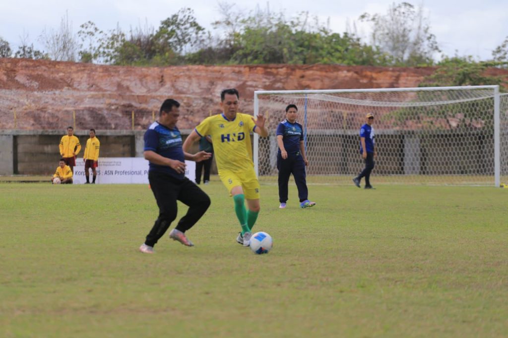 Kegiatan dilanjutkan dengan Pertandingan bola persahabatan antara Tim Kepala OPD melawan Tim Sekretaris OPD. Laga berlangsung seru dan penuh keakraban, menambah semangat kebersamaan di antara jajaran pimpinan dan ASN. Pertandingan dimenangkan oleh Tim Kepala OPD melalui adu pinalti.