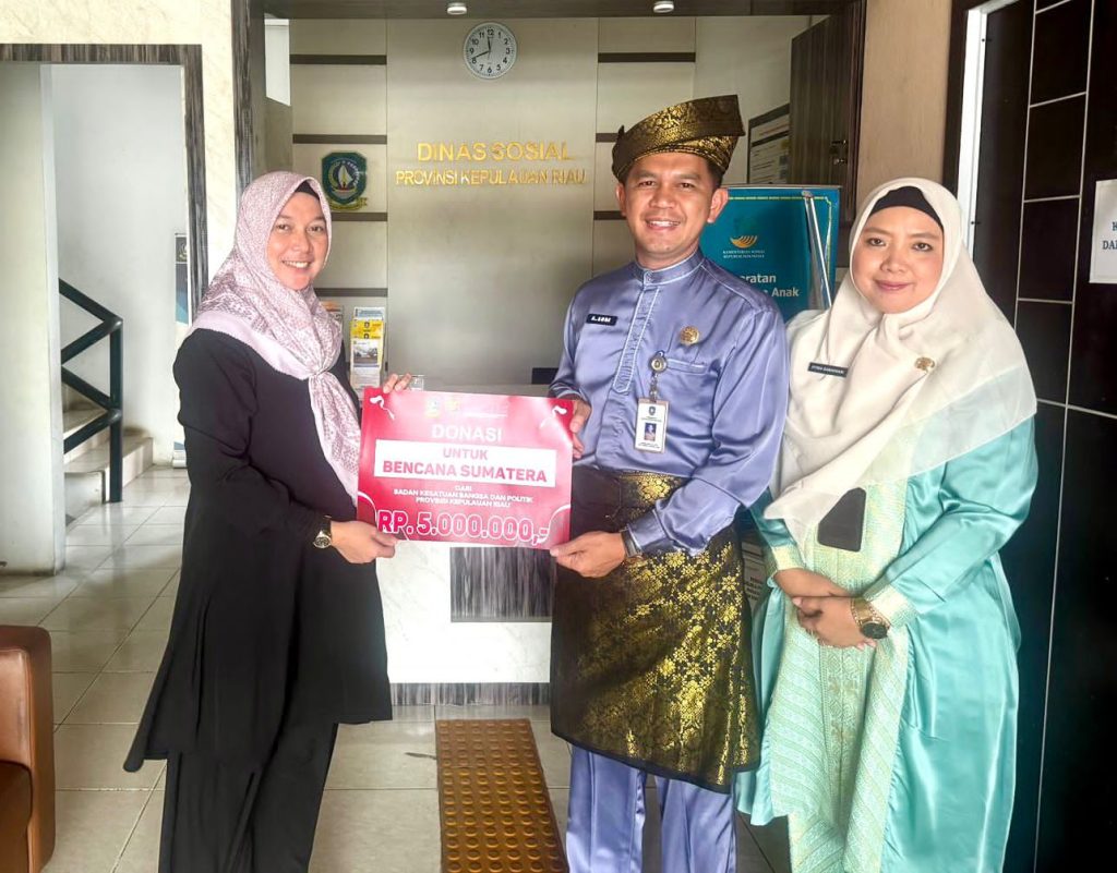 BAKESBANGPOL KEPRI – Kepala Badan Kesatuan Bangsa dan Politik (Bakesbangpol) Provinsi Kepulauan Riau yang di wakili oleh Sekretaris Bakesbangpol, Aludin Andi menyerahkan Bantuan/ Donasi untuk Korban bencana alam di Sumatera (Aceh, Sumbar dan Sumut) yang diterima langsung oleh Sekretaris Dinas Sosial Ibu Yeni selaku Panita Provinsi yang akan digabungkan dengan donasi dari OPD lainnya dan akan diserahkan sesuai jadwal yang telah di rencanakan.