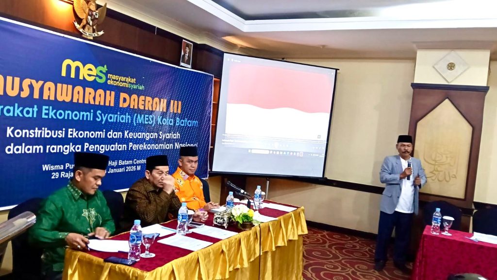 BAKESBANGPOL KEPRI – Sekretaris Badan Kesatuan Bangsa dan Politik (Bakesbangpol) Provinsi Kepulauan Riau, Aludin Andi, SE, MM yang juga selaku Sekretaris II PW MES Kepulauan Riau mewakili Ketua Umum PW MES Kepri membuka secara resmi acara Musyawarah Daerah (Musda) III Masyarakat Ekonomi Syariah Kota Batam yang diselenggarakan pada hari Minggu tanggal 18 Januari 2026 di Hotel PIH Batam.