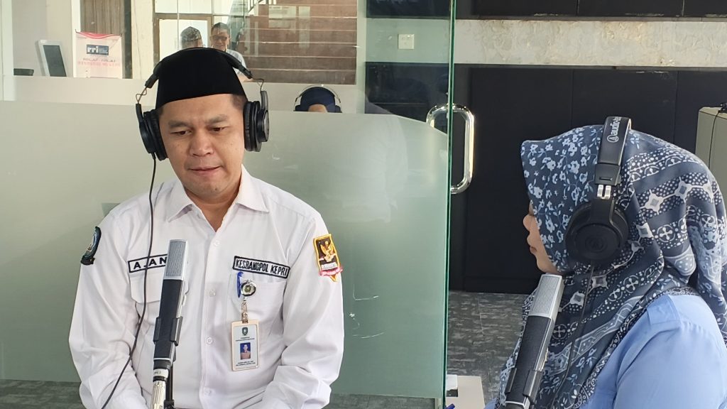BAKESBANGPOL KEPRI – Sekretaris Badan Kesbangpol Provinsi Kepri Aludin Andi menjadi Narasumber di RRI Tanjungpinang dalam program Dialog RRI Tanjungpinang Pagi dengan Tema; Program Kesbangpol Masuk Sekolah “Cinta Tanah Air dan Toleransi Tentukan Masa Depan Bangsa” bertempat di Studio Pro 1 RRI Tanjungpinang. Dialog dipandu olen Presenter Aisyah Idris.