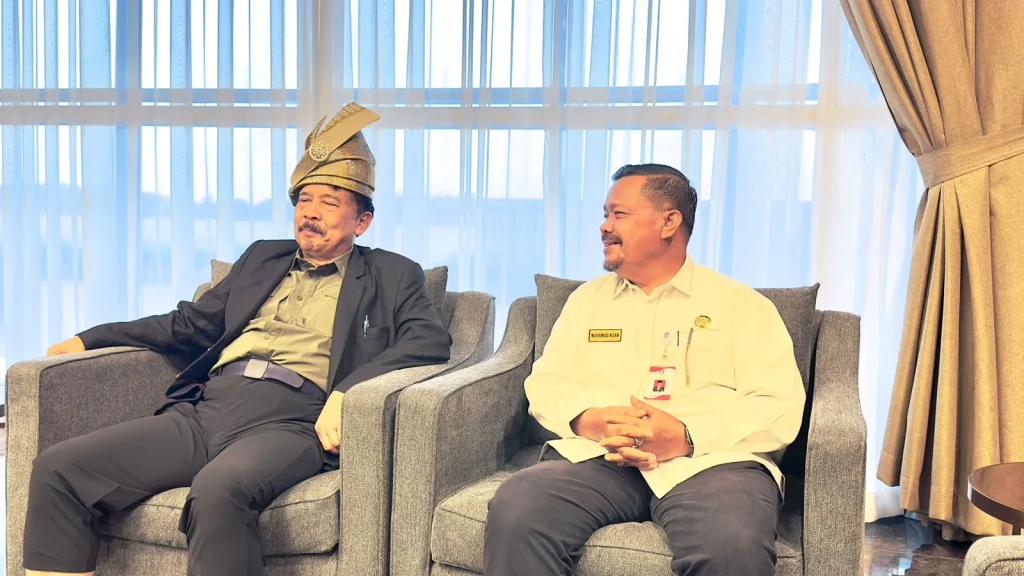 Sebagai bentuk Penghormatan atas kehadirannya, M.Iksan Kaban Kesbangpol Kepri Memasangkan Tanjak Kepada Kepala BPIP.
