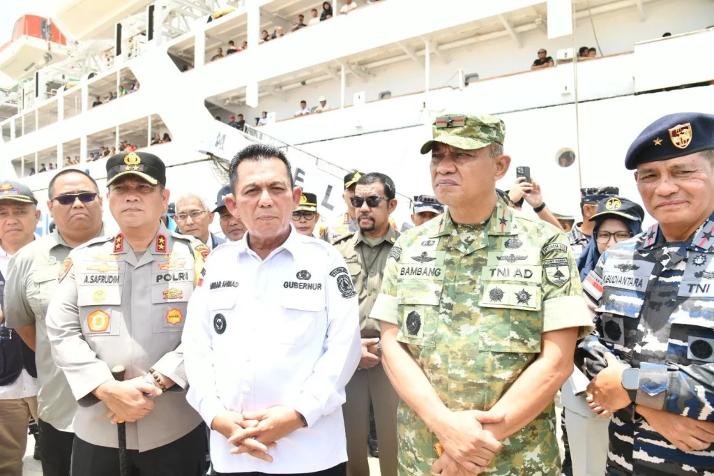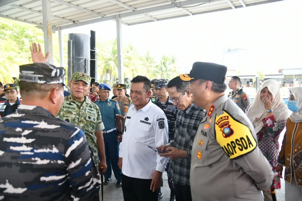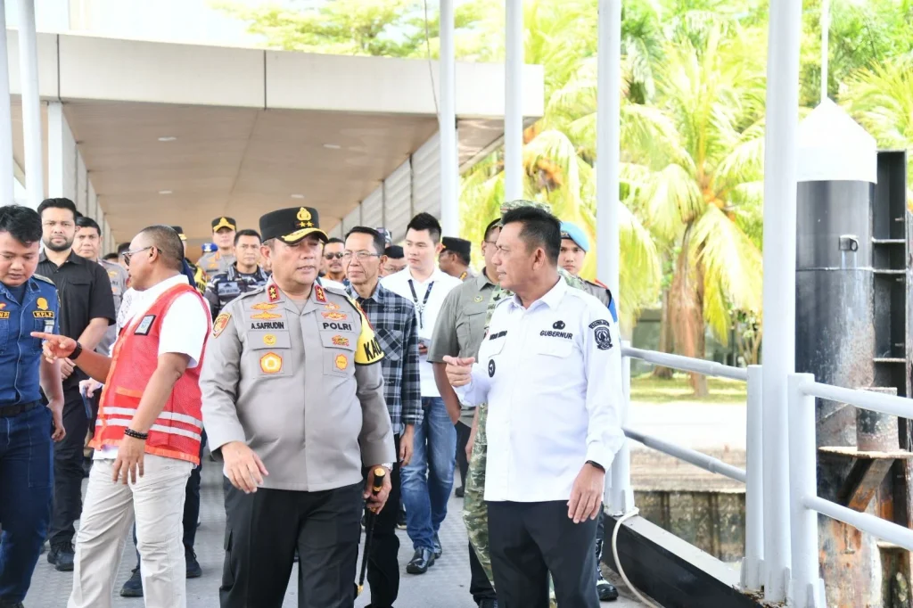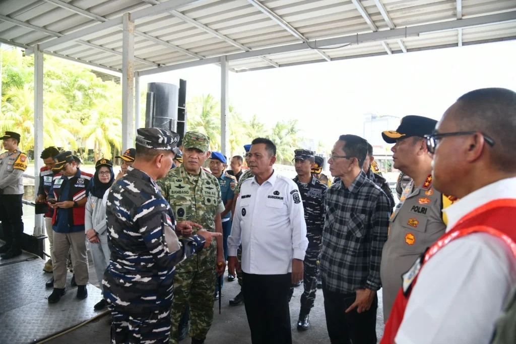 BAKESBANGPOL KEPRI – Gubernur Kepri Ansar Ahmad bersama Forkopimda Provinsi Kepulauan Riau, melakukan peninjauan pada para pemudik KM Kelud Pelni Tujuan Belawan Sumatera Utara, di Pelabuhan Bintang Persada 99 Batu Ampar Kota Batam, pada Sabtu (14/3/2026) Siang. Gubernur Ansar dan rombongan berkesempatan meninjau langsung dengan menaiki dan melihat kedalam KM Kelud Herman, dan melihat berbagai kesiapan mereka dalam melayani arus mudik lebaran 2026 ini.