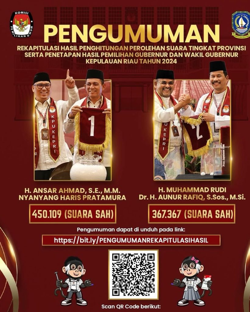 Data Rincian Perolehan Suara Pasangan Gubernur Dan Wakil Gubernur Provinsi Kepulauan Riau Tahun 2024